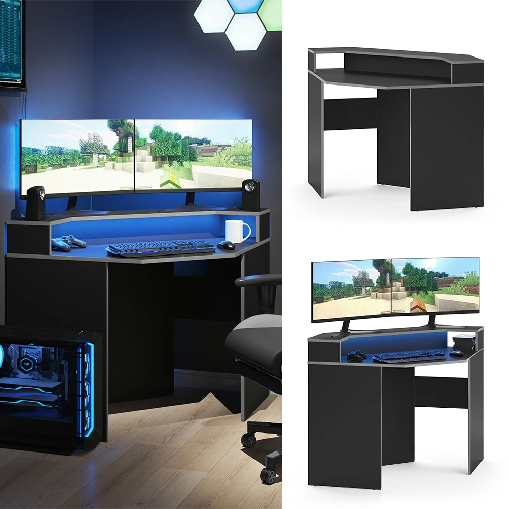Unser Computertisch Kron ist auch in Kombination mit weiteren Möbeln der Serie Kron bestens geeignet für große Gaming-Setup-Nutzer. Durch das moderne Design bietet er perfekte Organisation und ausreichend Stauraum.