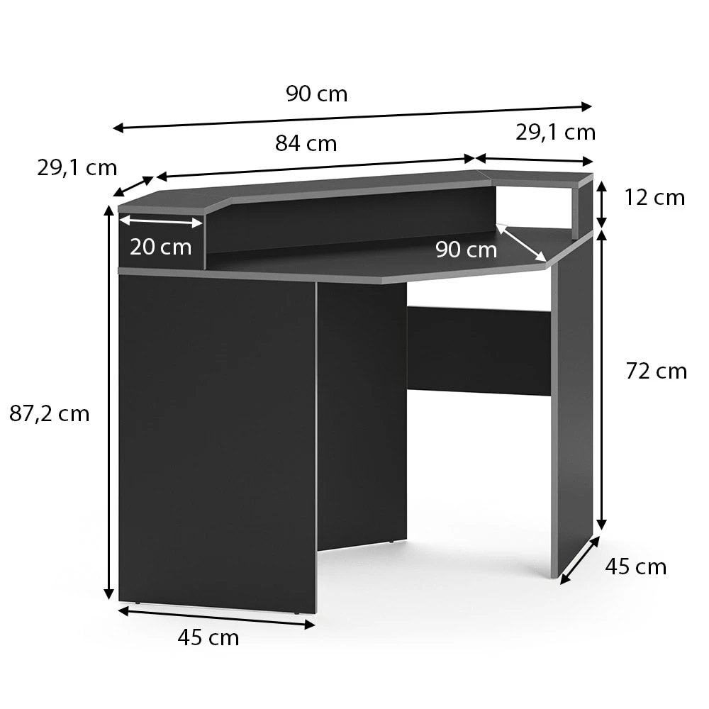 • Die Gesamtmaße betragen Computertisch (Ecke) 90 x 87,2 x 90 cm (BxHxT).