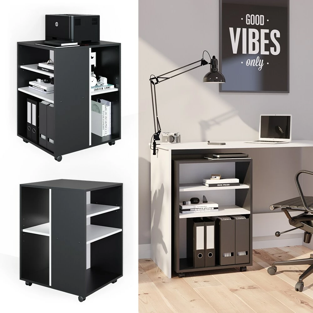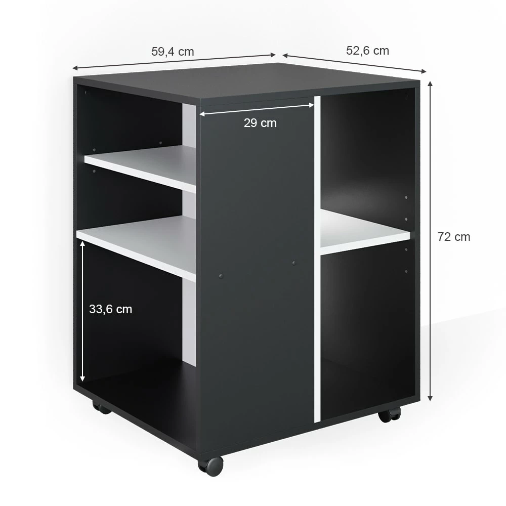 Die 5 Fächer lassen sich durch 2 variable Einlegeböden verstellen und sorgen für ausreichend Stauraum. Die Leichtlauf-Rollen bieten Ihnen dabei ein Maximum an Mobilität.