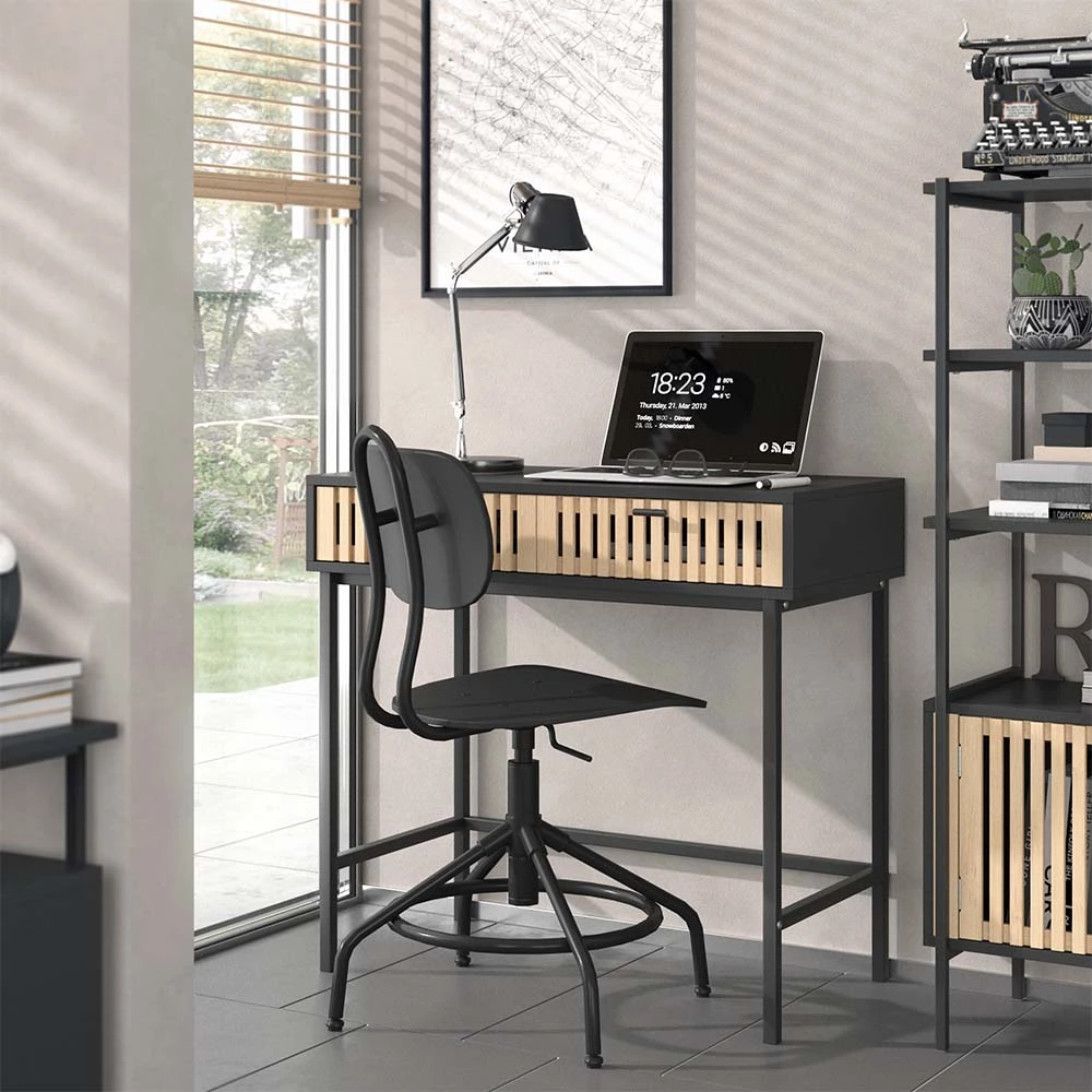 • Der Bürotisch überzeugt mit schlichter Optik und modernem Design. Als Computertisch oder kleiner Schreibtisch ist er perfekt fürs Arbeitszimmer im Homeoffice geeignet.