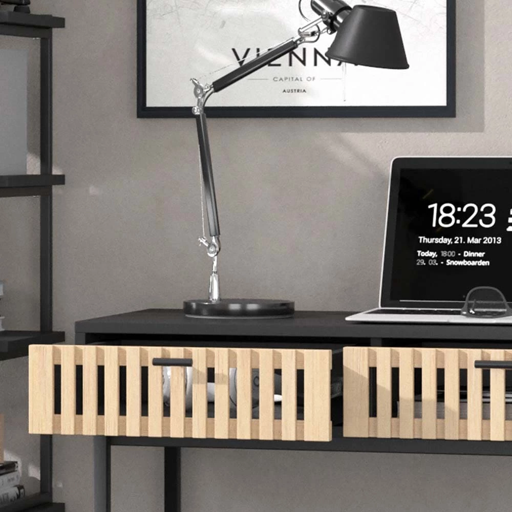 Der Schreibtisch ist pflegeleicht und kann einfach mit einem feuchten Tuch gereinigt werden, um Staub und Schmutz zu entfernen.