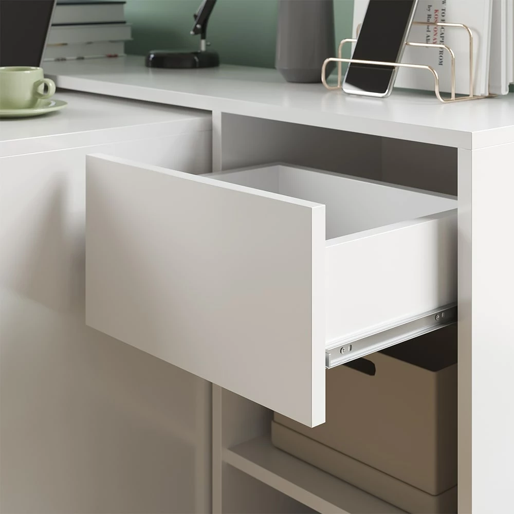 Für die passende Ordnung und Organisation sorgen die leichtgängige Schublade und zwei offenen Regalfächer darunter.