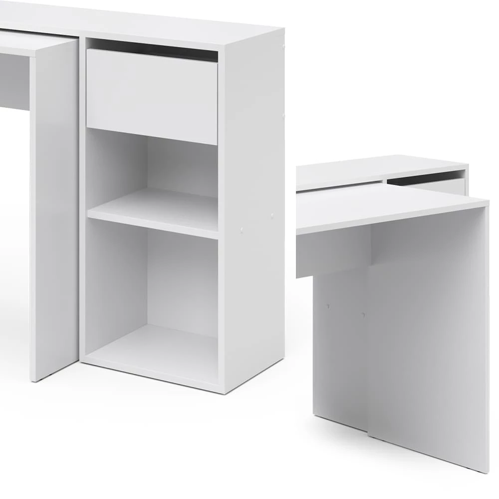 • Der ausziehbare Schreibtisch benötigt im kompakten Zustand nur wenig Stellfläche und schafft ausgezogen viel Arbeitsfläche.