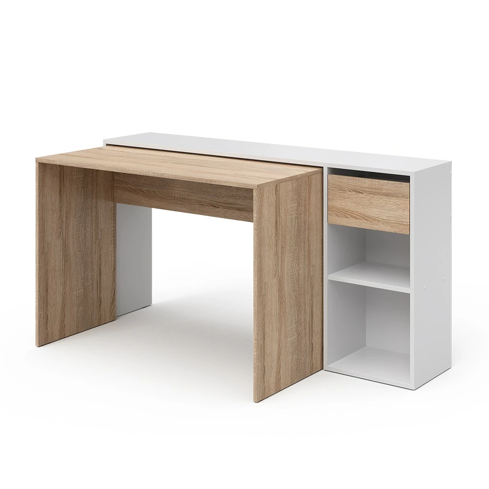 • Der ausziehbare Schreibtisch benötigt im kompakten Zustand nur wenig Stellfläche und schafft ausgezogen viel Arbeitsfläche.