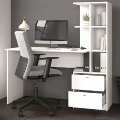 • Die Kombination aus Regal und Schreibtisch ist sehr nützlich bei der Unterbringung Ihrer Unterlagen und schafft Ordnung bei wenig Platzverbrauch.