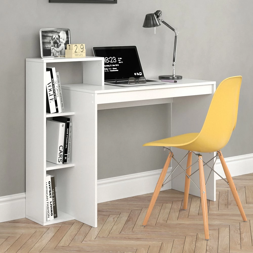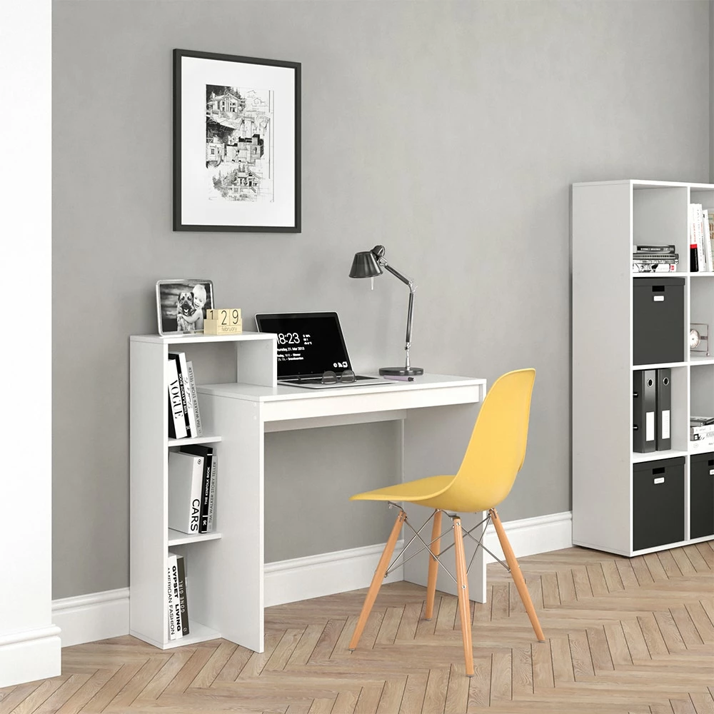 Durch seine flexible Stellweise lässt sich dieser Schreibtisch individuell in Ihr Arbeitszimmer integrieren und bietet viel Stauraum. Nutzen Sie den Schreibtisch auch für Ihr Kind.